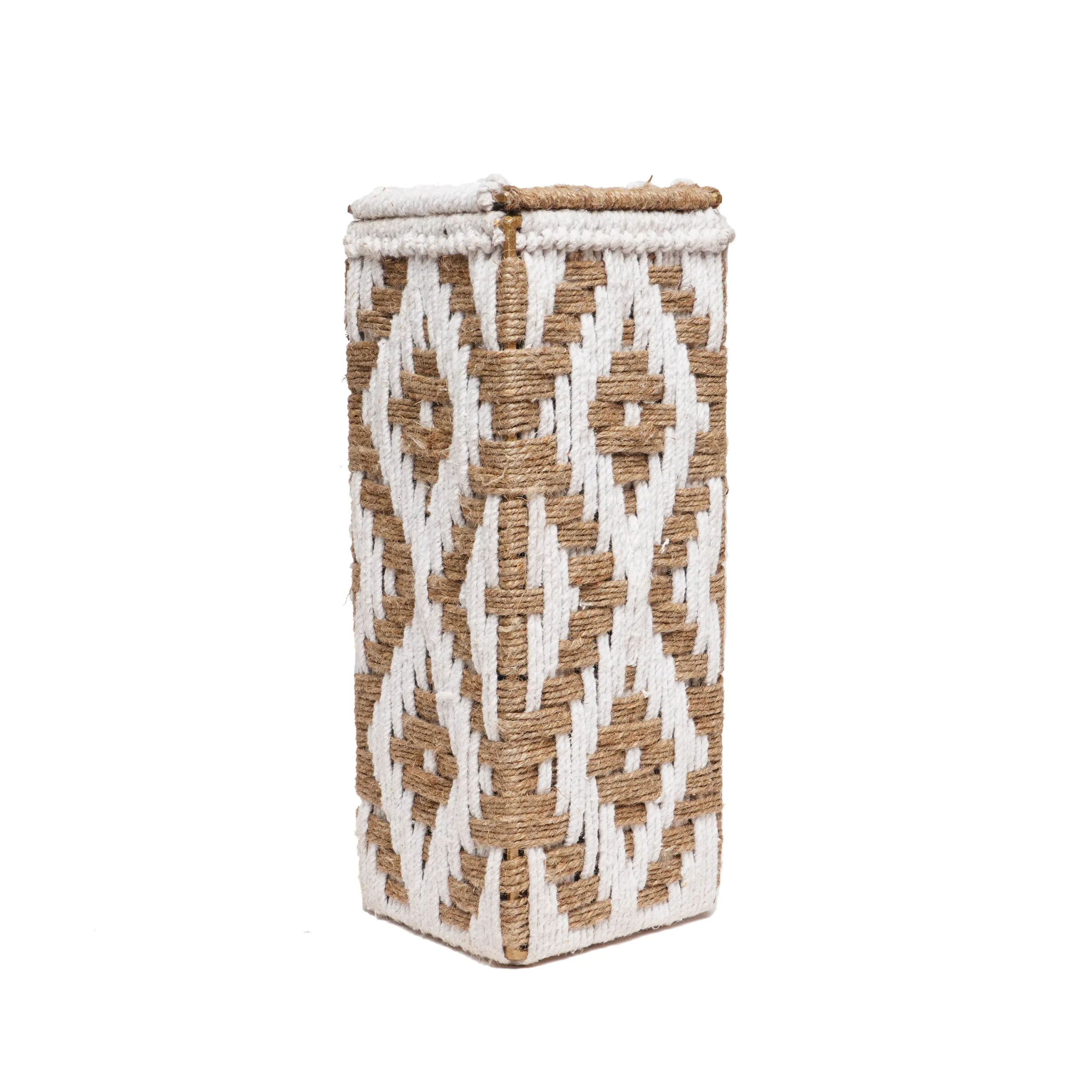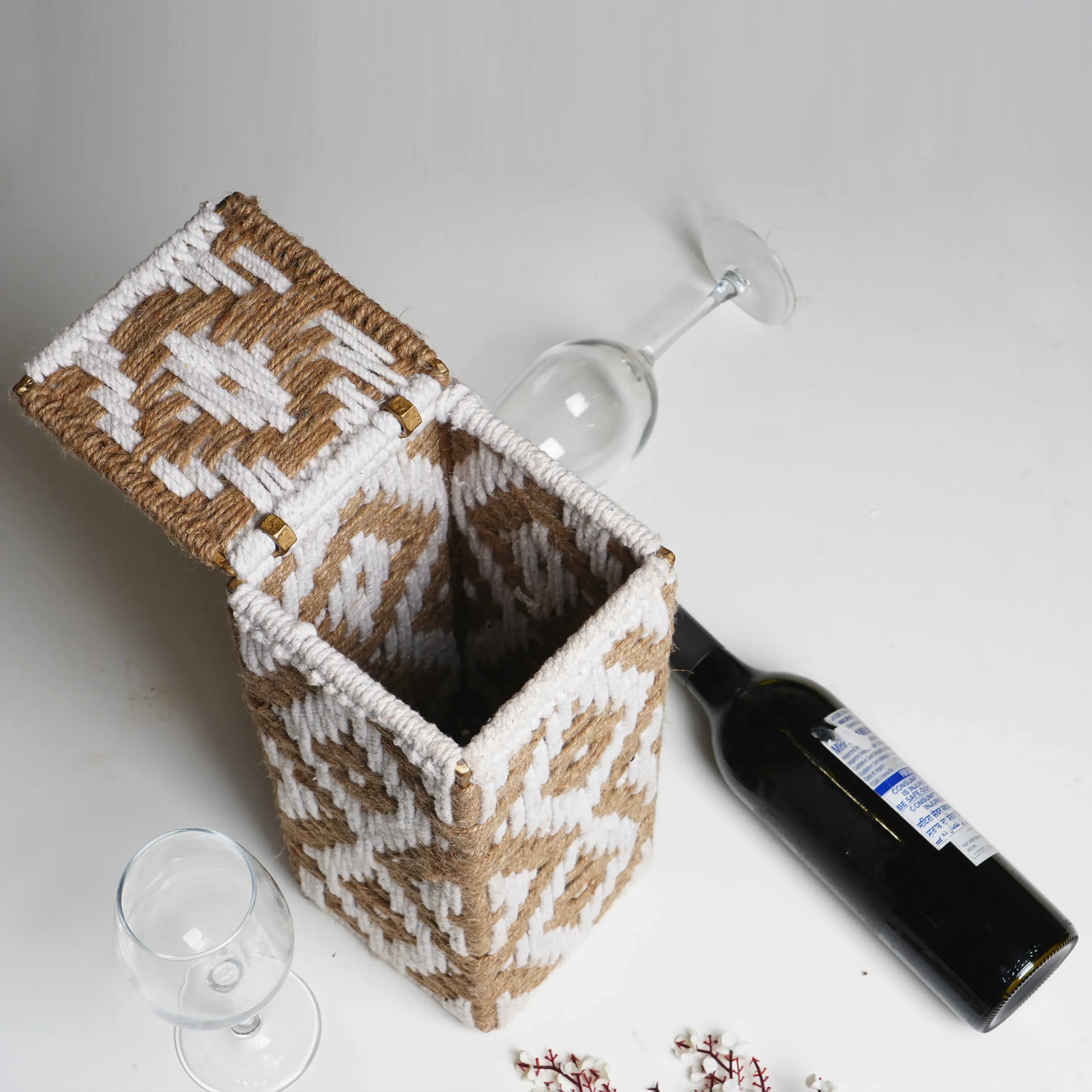 An elegant handwoven wine box crafted with a durable iron frame and fawn muni-cotton rope weave. Designed for mindful gifting or display, it brings warmth and artisanal charm to any table or bar. Curated by Shivom Bliss to celebrate India’s handmade heritage and sustainable craftsmanship.