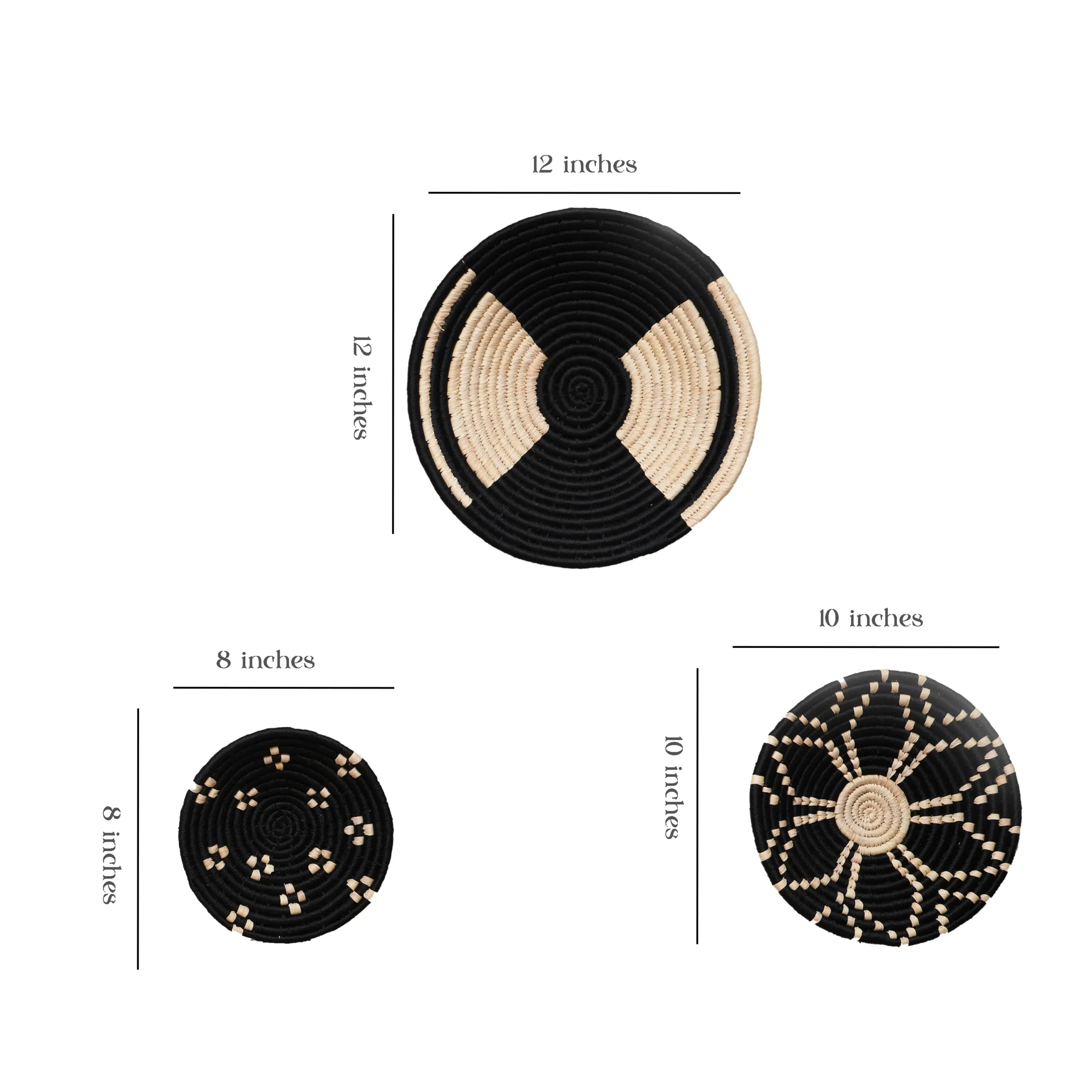 Set of 5 Sabai Grass Wall Plates – Black & Natural